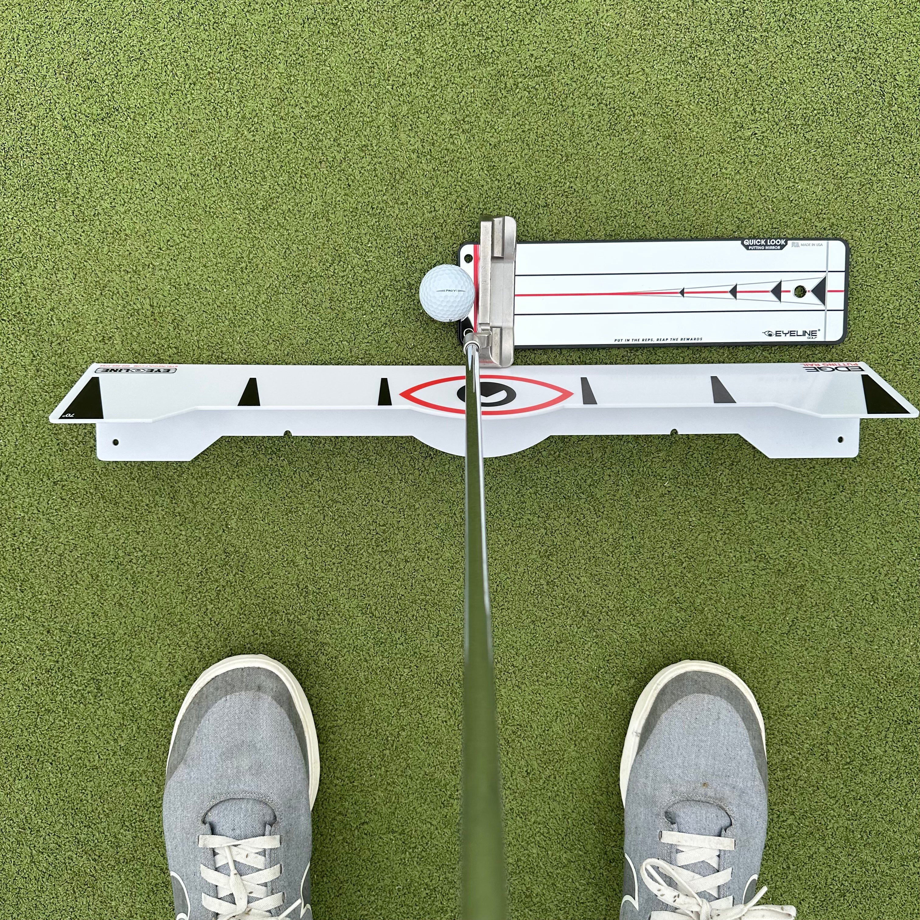 The Quick Look Mirror checks your setup—eyes, putter face, ball position—while the Edge Rail keeps your stroke on track. Together, they eliminate guesswork and make your practice more efficient. No bending down to place the ball, no second-guessing your alignment. Just clean reps, repeatable results, and progress you can feel.