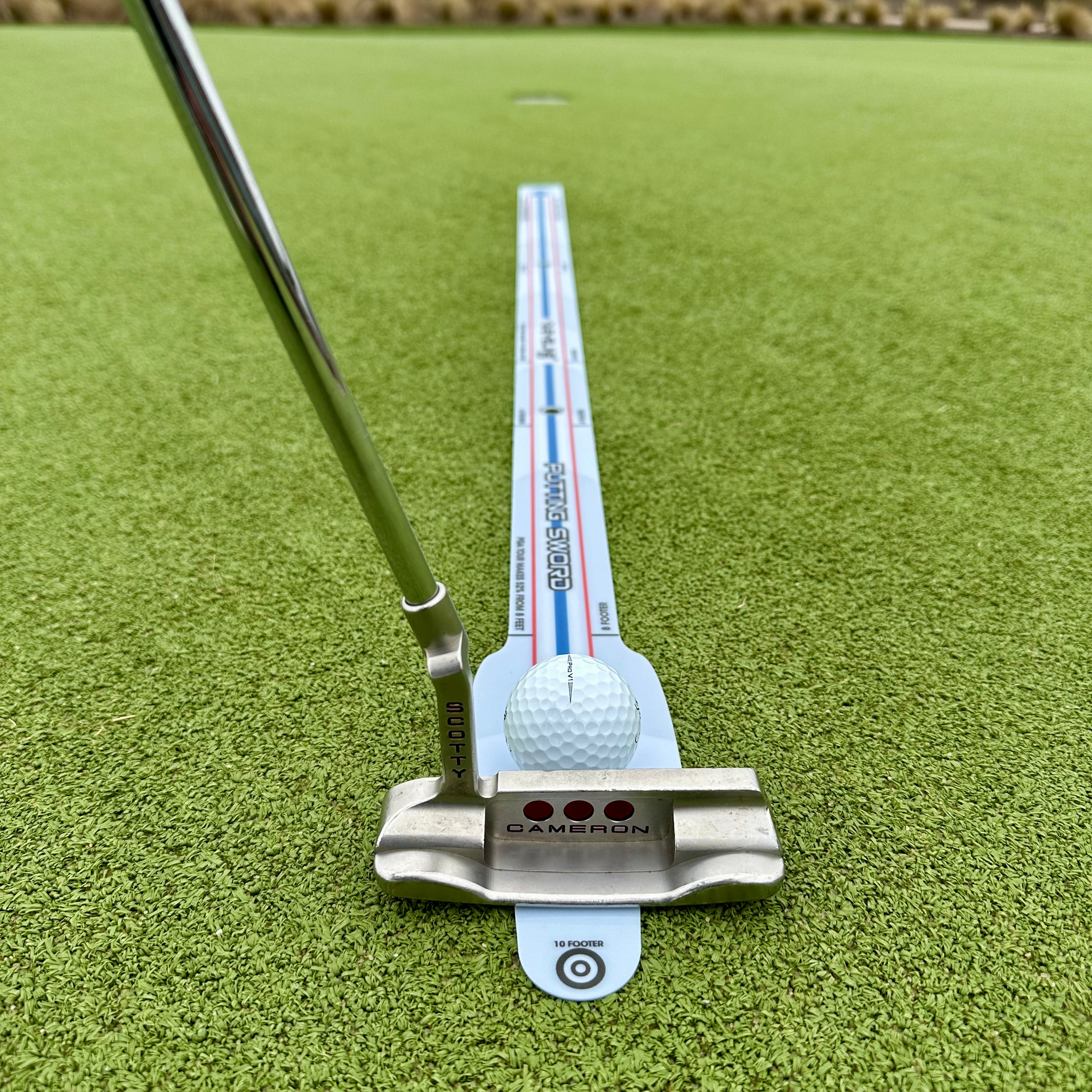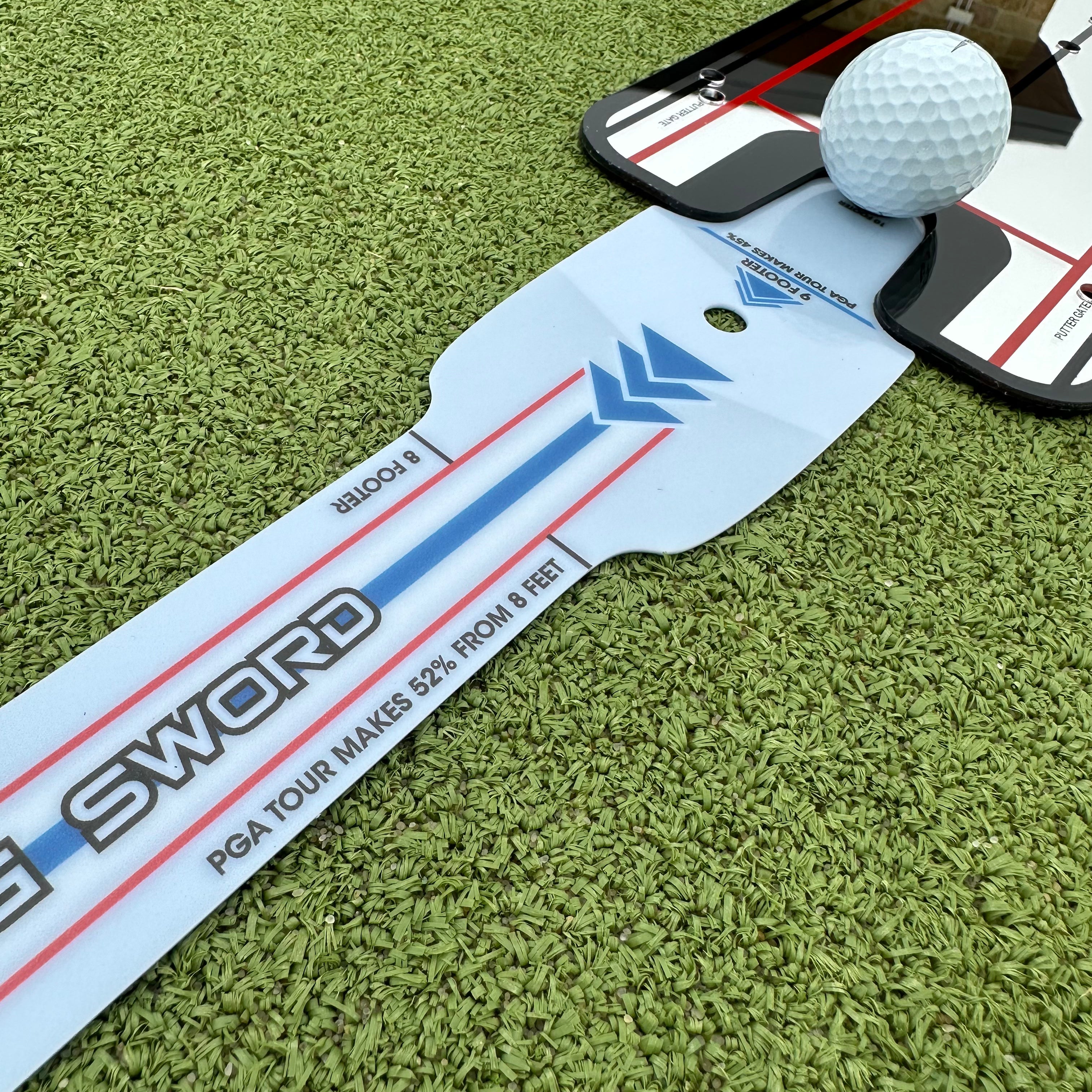 The Sword mimics that margin of error. When the ball rolls cleanly off the end, it means it would’ve gone in from the distance marked. The Standard Sword simulates a 10-foot make from the end. The Tour Sword is slightly narrower and simulates a 13-foot putt—giving you less room for error and a tougher challenge.